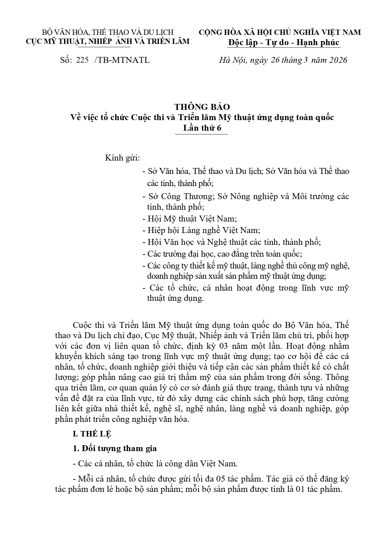 Số/ Ký hiệu: 225/TB-MTNATL Ngày ban hành: 2026-03-26 Loại văn bản: CHÍNH SÁCH - VĂN BẢN